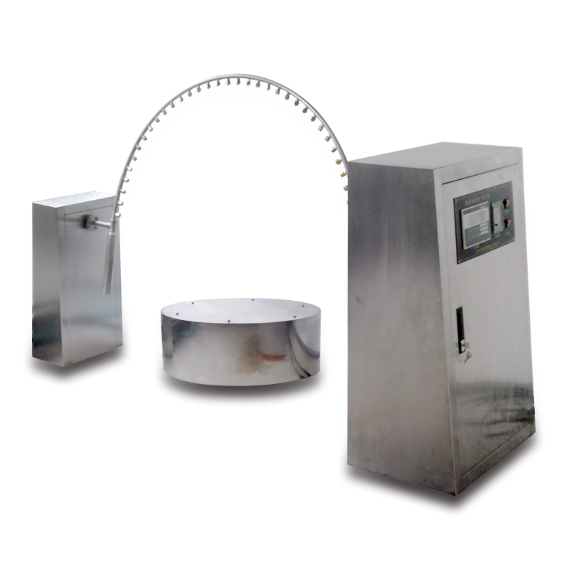 擺管淋雨實驗裝置主要是測試產(chǎn)品在淋雨的氣候環(huán)境下的貯存,運輸和使用時的性能試驗,主要用于對電工電子產(chǎn)品,燈具,電柜,電器元件,汽車,摩托車及其零部件等產(chǎn)品在模擬淋雨的氣候條件下,對產(chǎn)品的物理以及其它相關性能進行測試。